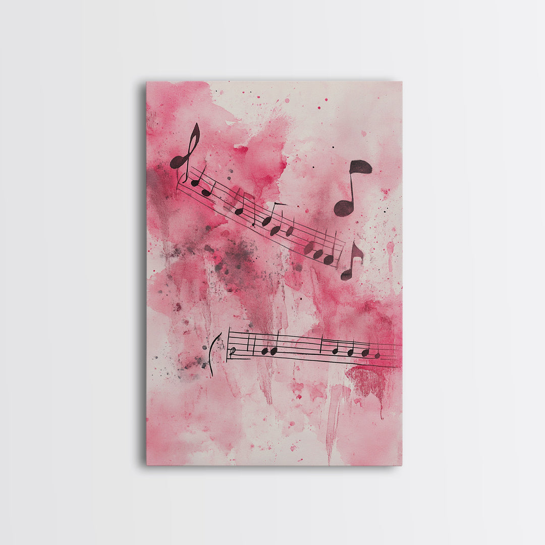 Musical Notes Watercolor Framed Canvas Print Light Pink Wall Art Rustic Decor Moody Art Cottagecore Art Above Sofa Gift Idea Minimalist Art