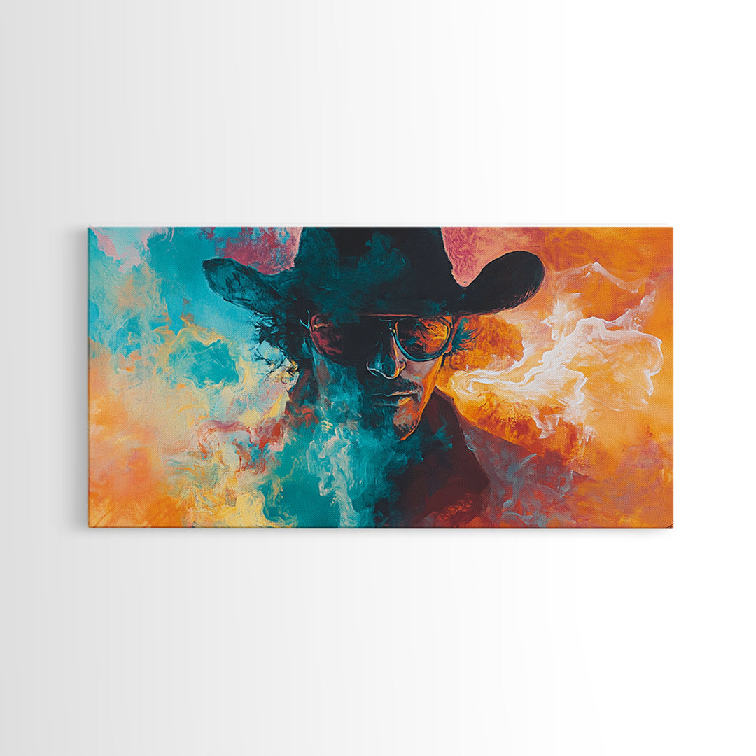 Mysterious Cowboy Smoking Cigarette - Framed Canvas Print, Western Pop Art, Bold Wall Art for Living Room or Bar