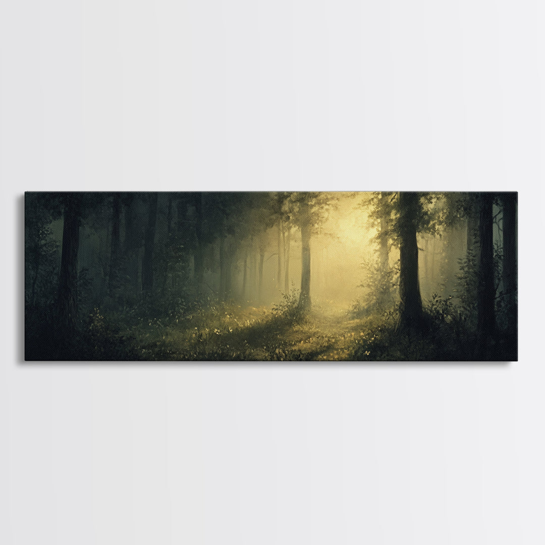 Mystical Forest, Wabi Sabi Art, Zen Wall Art, Forest at Dusk Painting, Tall Skinny Art, Moody Art, Extra Wide Art, Canvas Print