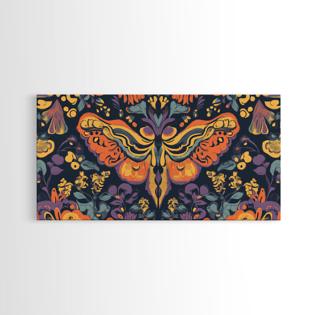 Mystical Butterfly Mandala Framed Canvas Print, Whimsical Art Decor, Colorful Bohemian Wall Art, Sacred Geometry, Dreamy Bedroom Art