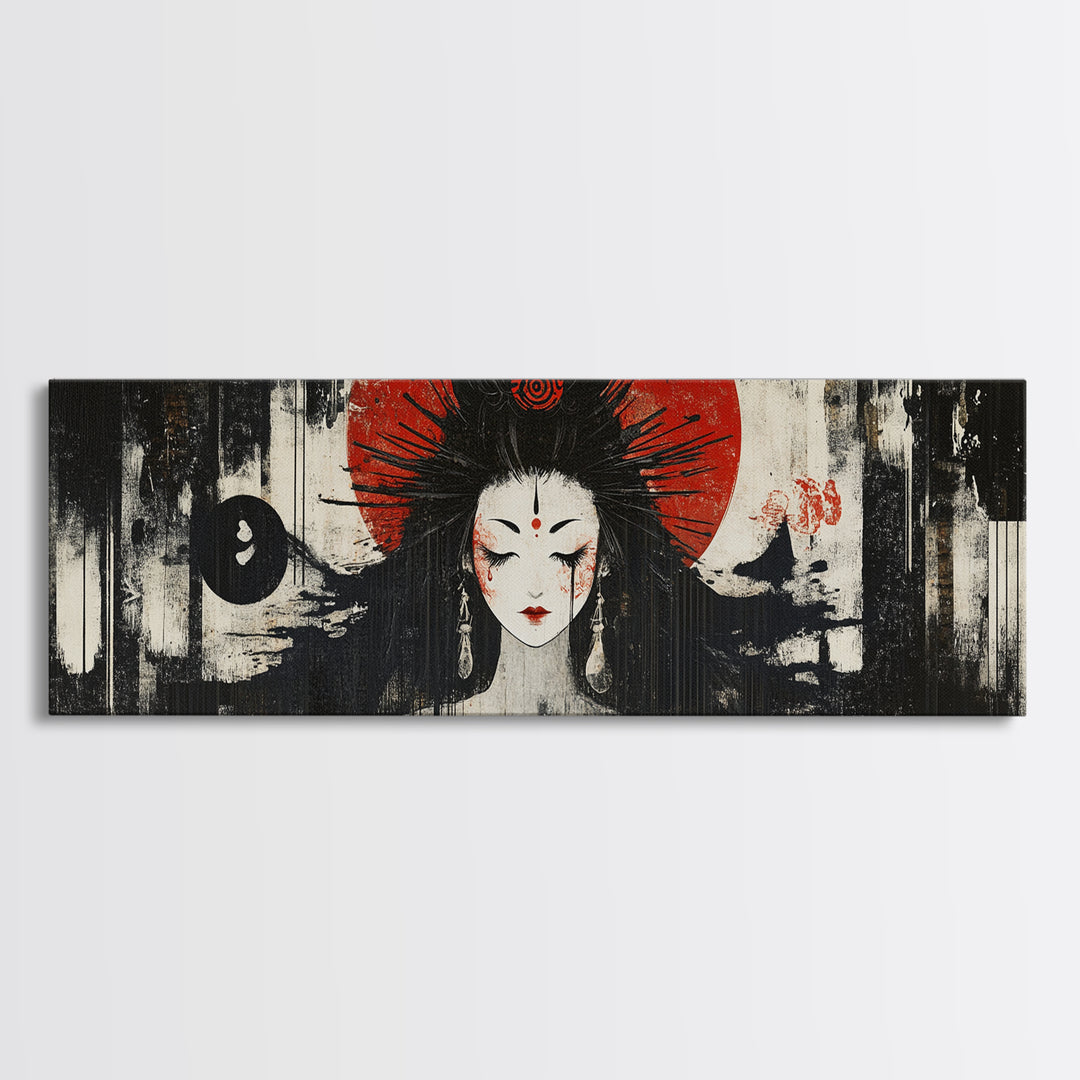Mystical Goddess Framed Canvas Print Dark Angels Wall Art Japanese-Inspired Sacred Geometry Art Bedroom Wall Decor