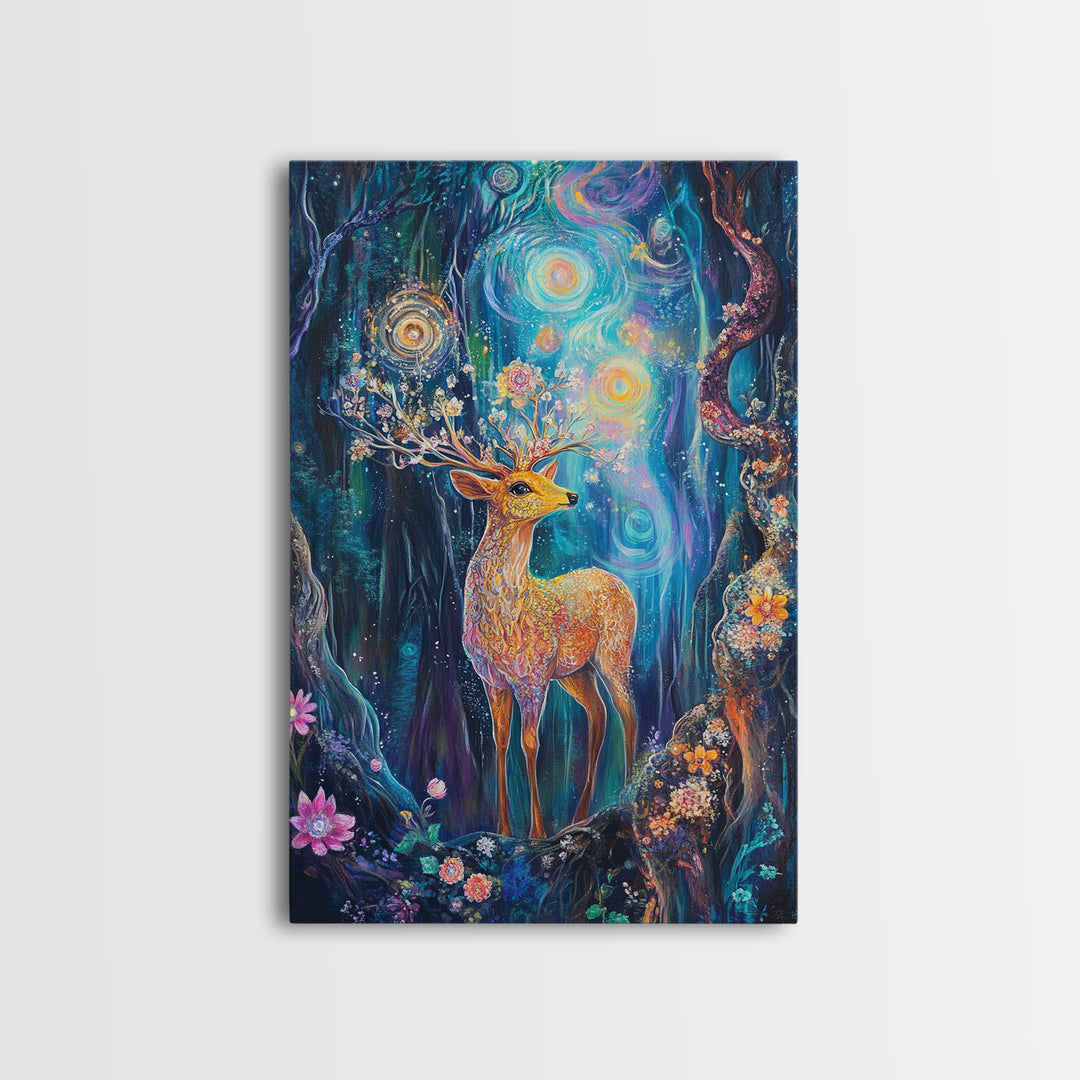 Mystical Deer, Enchanted Forest, Fantasy Animal Art, Whimsical Art, Cottagecore Wall Art, Above Sofa Art, Canvas Print, Gift Idea