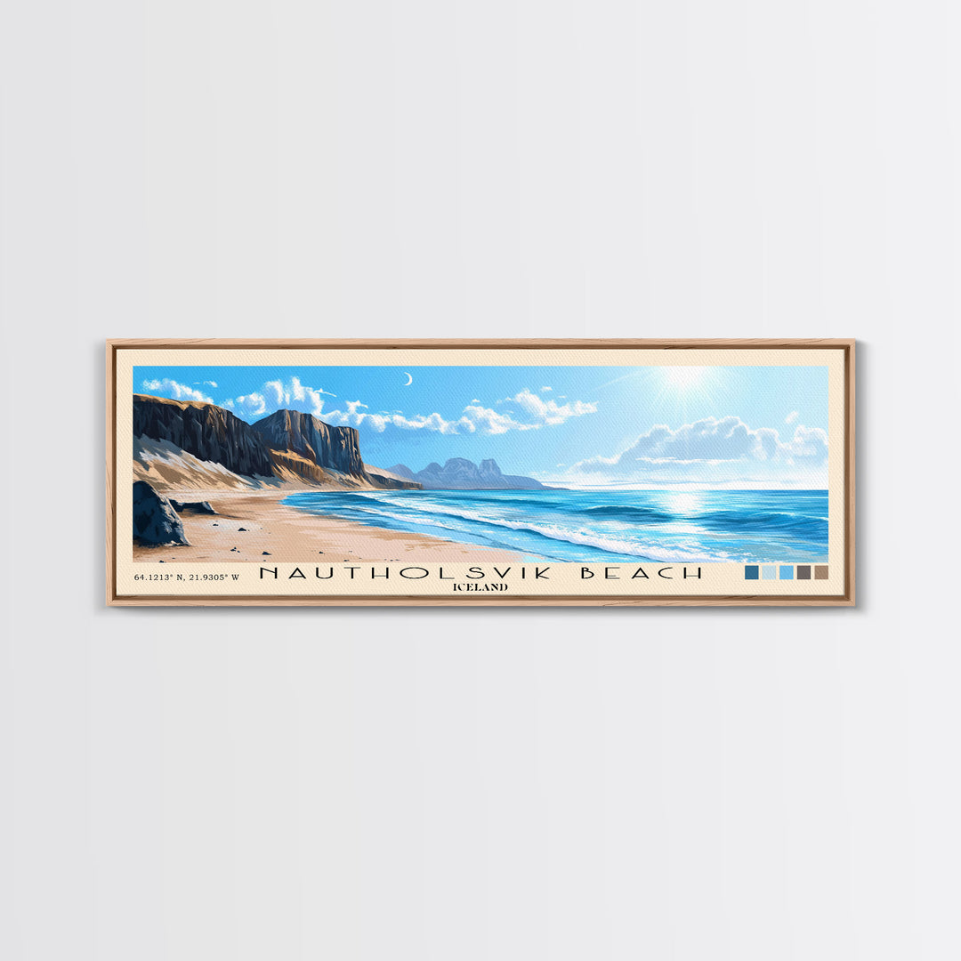 Nautholsvik Beach, Iceland Panoramic Print, Vacation Gift, Iceland Wall Art, Beach Painting, Beach Decor, Large Wall Art, Wood Frame Art