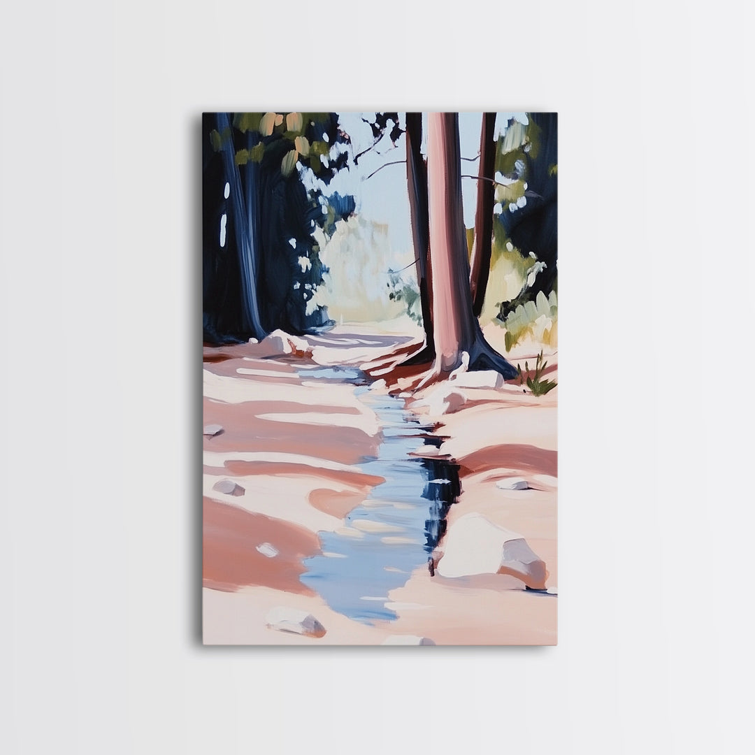 Nature Stream, Forest Landscape, Tranquil Woods, Framed Canvas Print, Minimalist Wall Art, Living Room Wall Decor, Rustic Home Decor