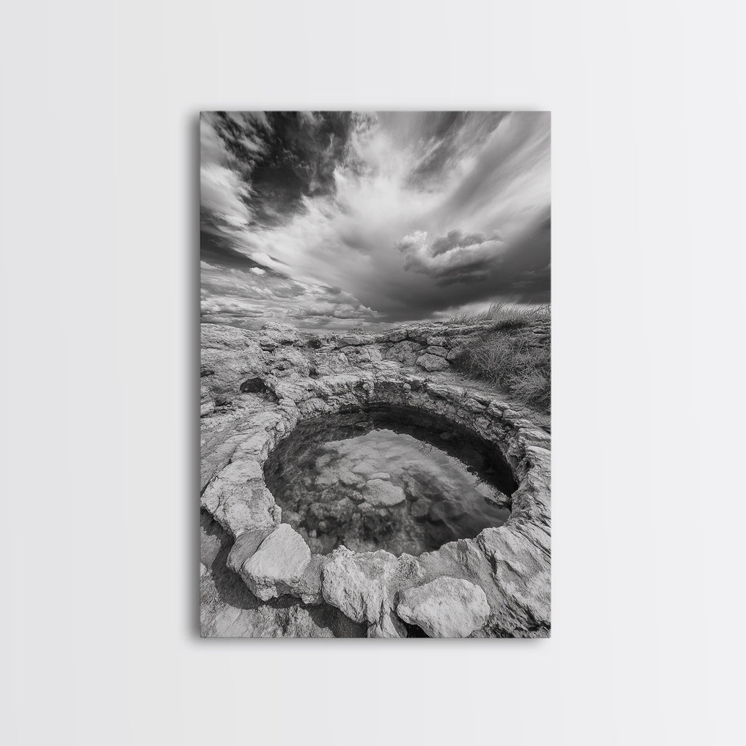 Natural Rock Pool, Moody Water Reflection, Rustic Earth Photography, Canvas Print, Zen Bathroom Wall Art, Minimalist Nature Decor