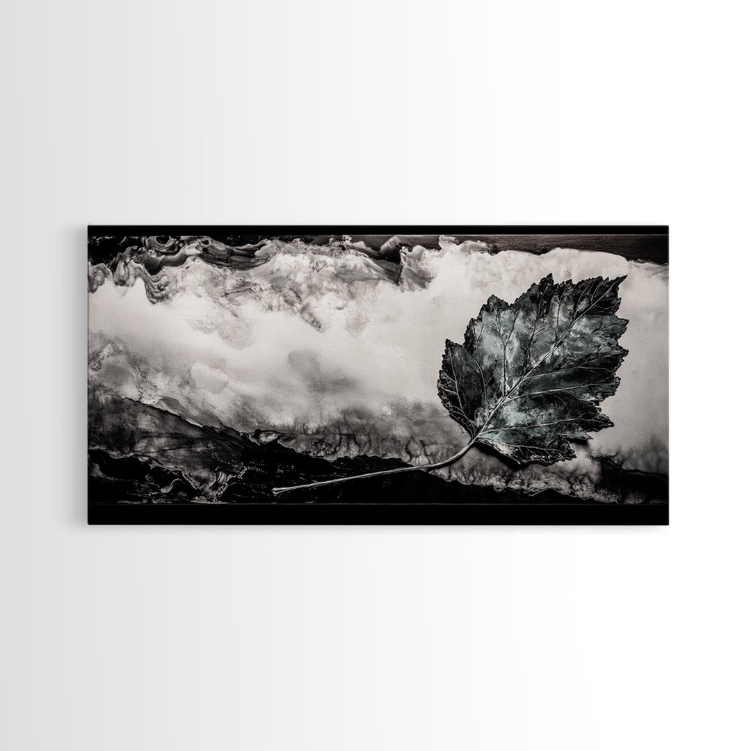 Nature Leaf Art, Monochrome Painting, Abstract Botanical Prints, Black and White Art, Modern Wall Decor, Framed Canvas Print, Rustic Art