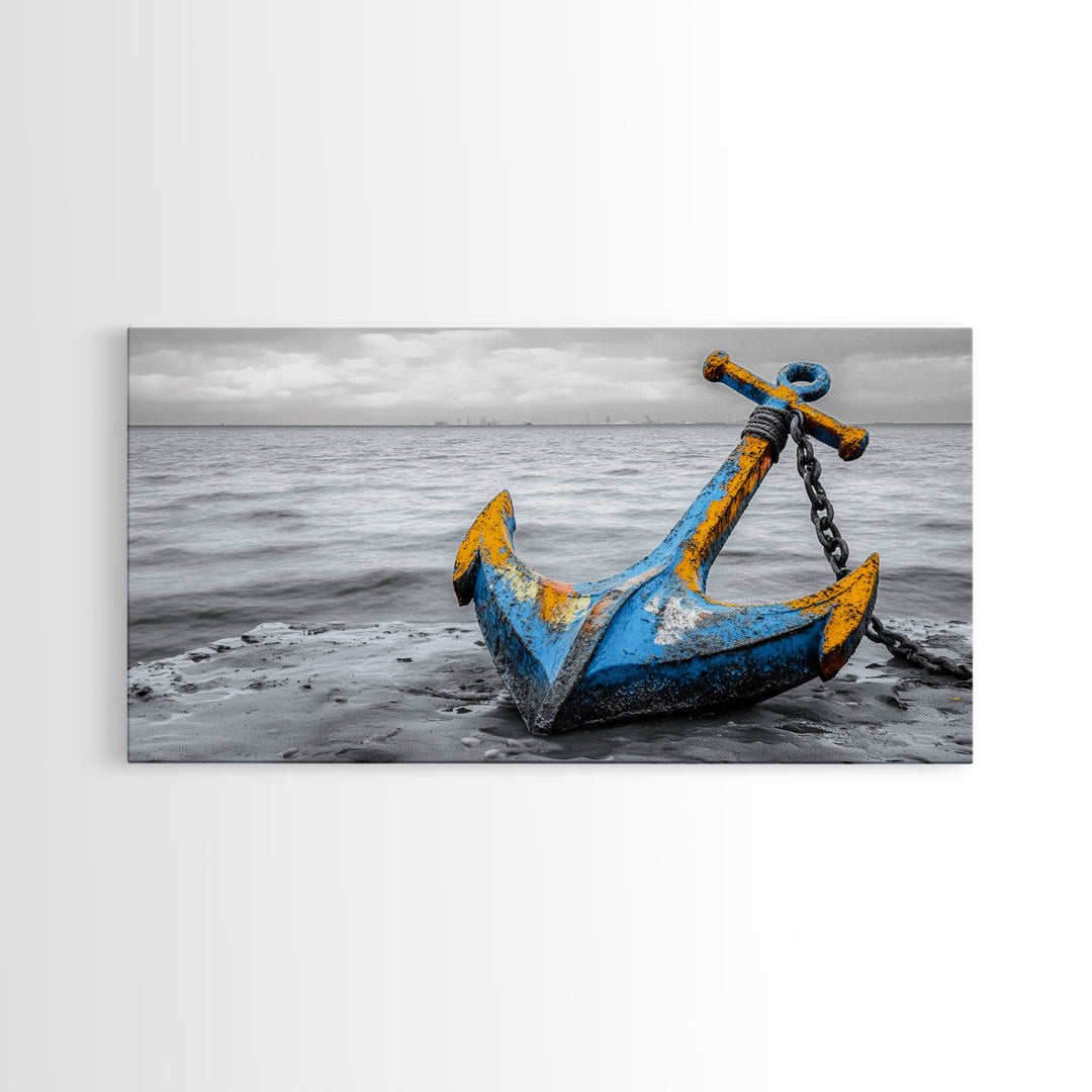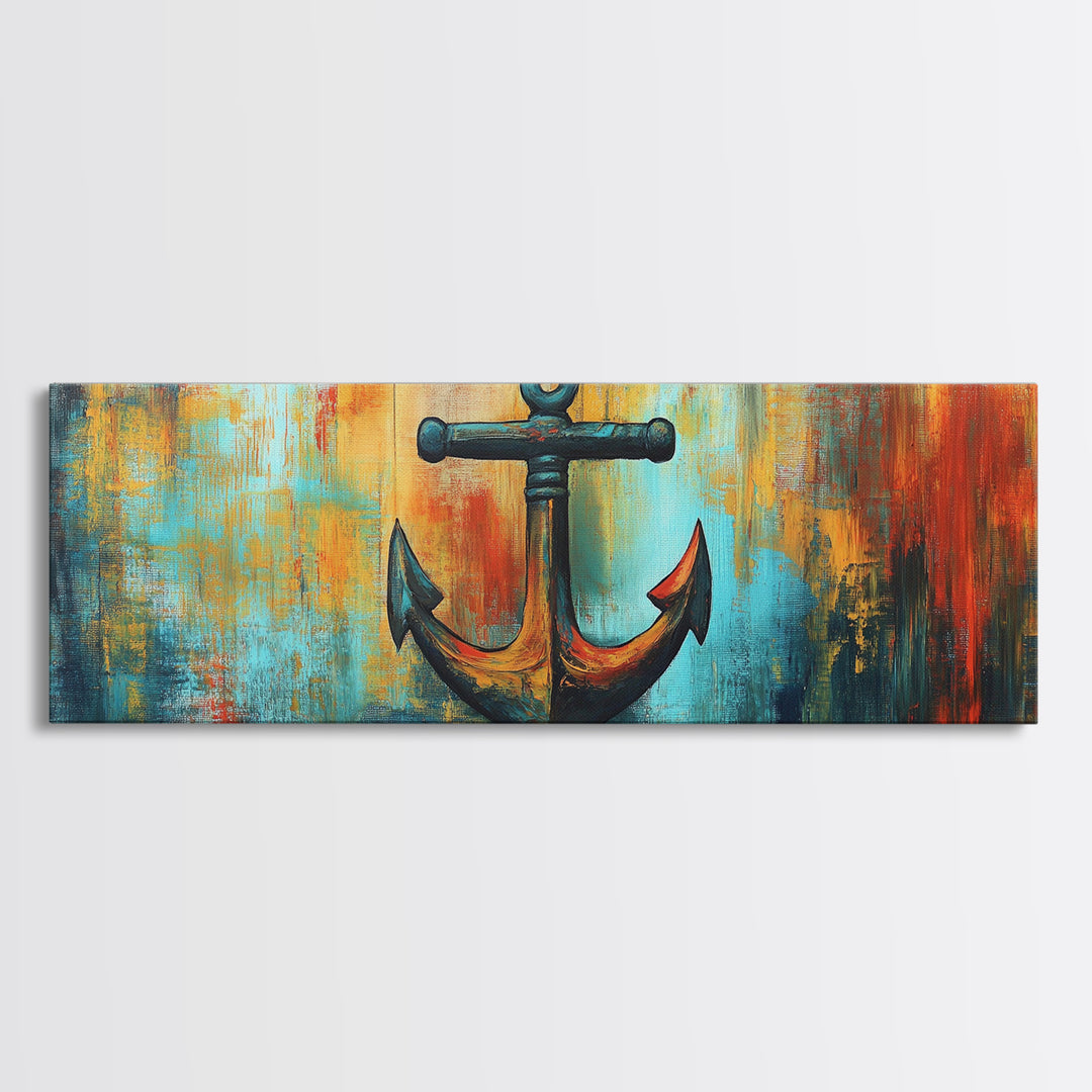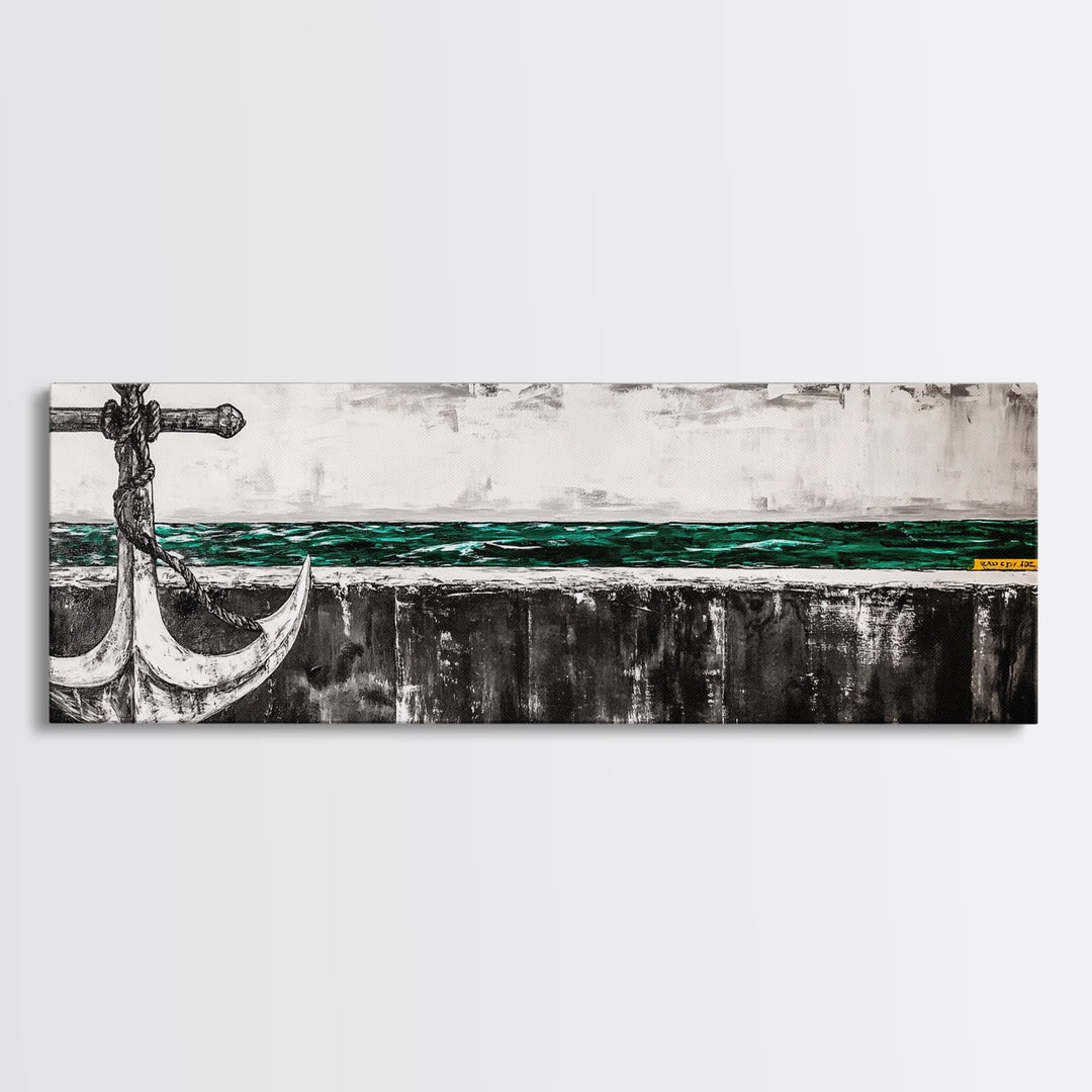 Nautical Anchor, Coastal Decor, Rustic Wall Art, Extra Wide Art, Nautical Wall Art, Horizontal Wall Art, Framed Canvas Print, Living Room Art