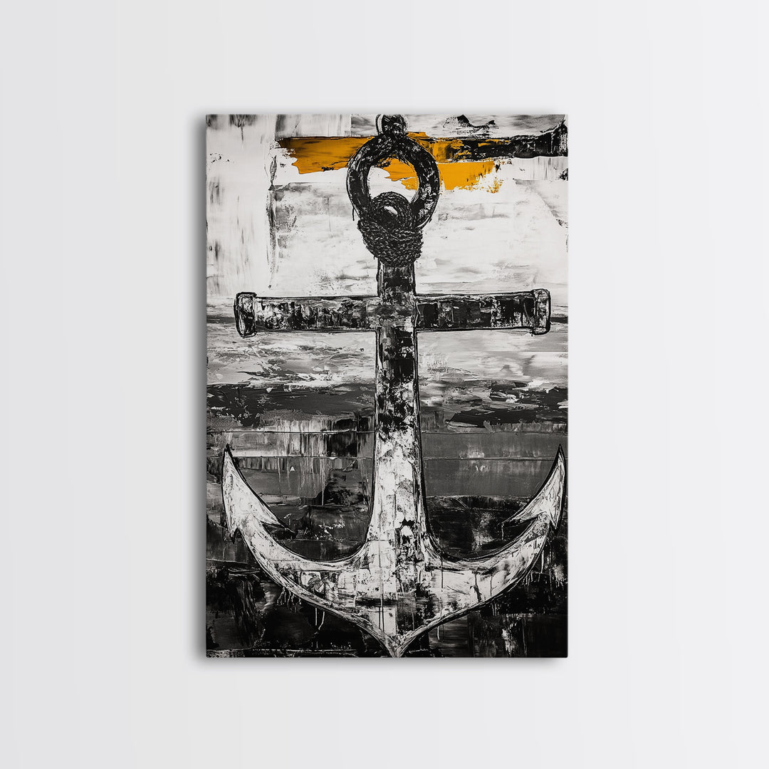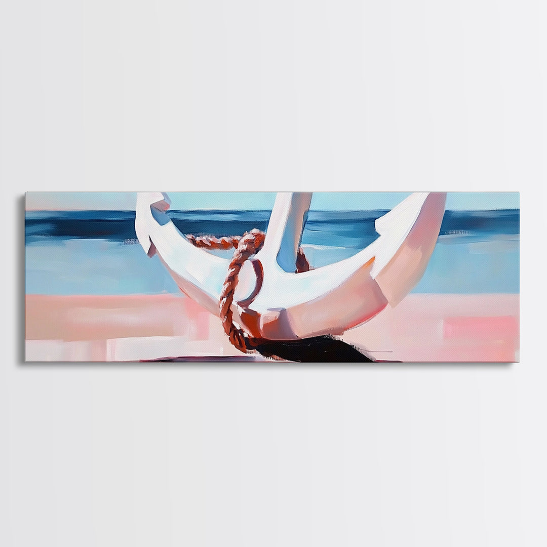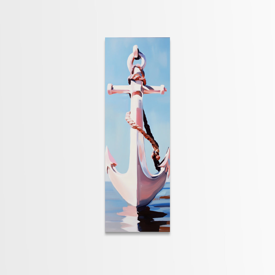 Nautical Anchor, Maritime Wall Art, Rustic Coastal Decor, Minimalist Seaside Painting, Framed Canvas Print, Ocean Home Aesthetic