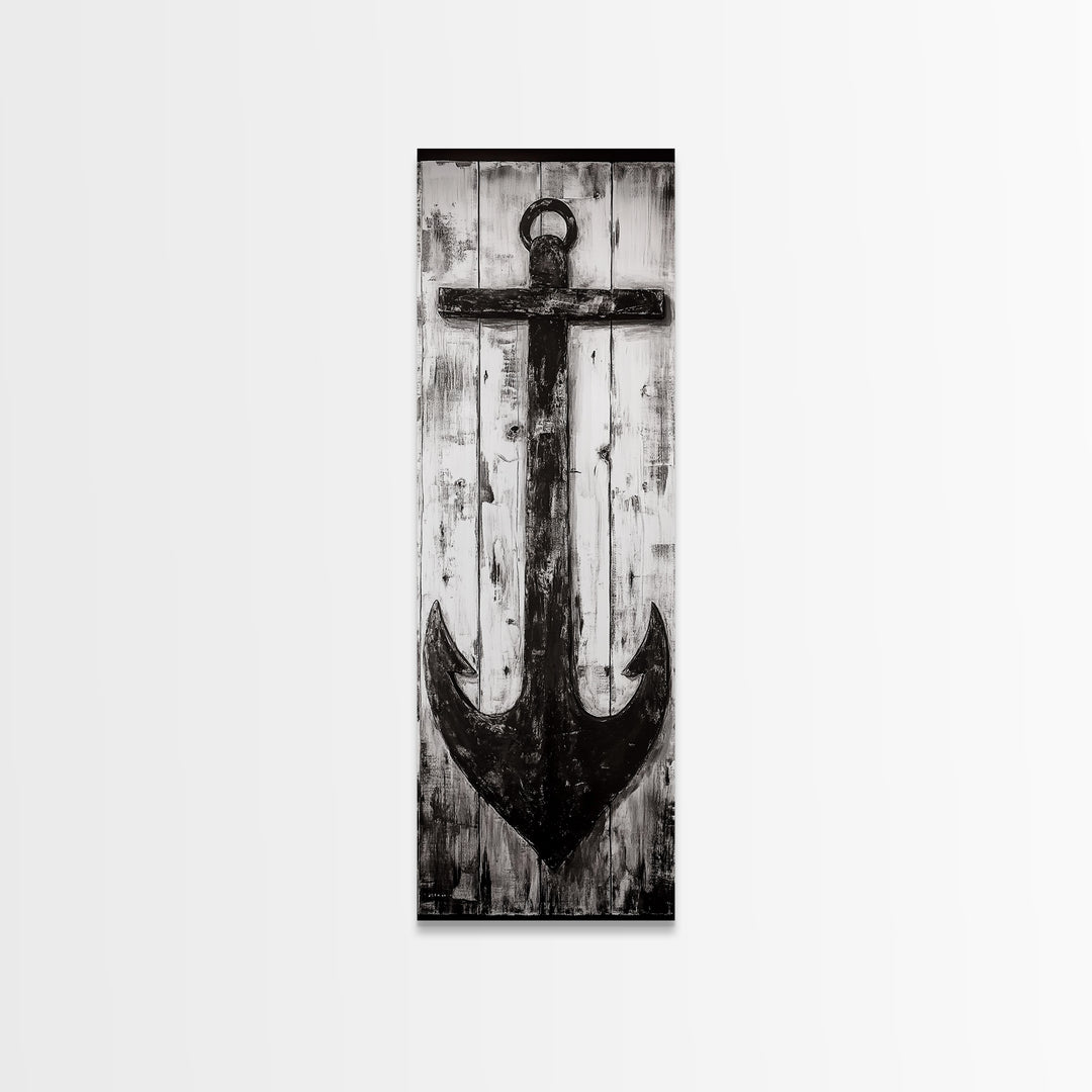 Nautical Anchor Art, Coastal Black White Wall Art, Rustic Marine Decor, Ocean Inspired Artwork, Vintage Maritime Style, Framed Canvas Print