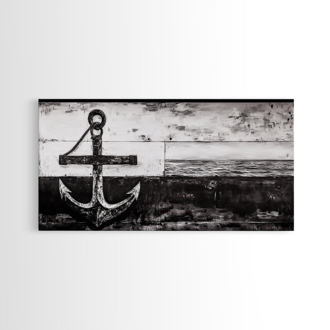 Nautical Anchor Art, Black and White Ocean Print, Coastal Wall Decor, Vintage Maritime Art, Modern Canvas Print, Living Room Wall Art