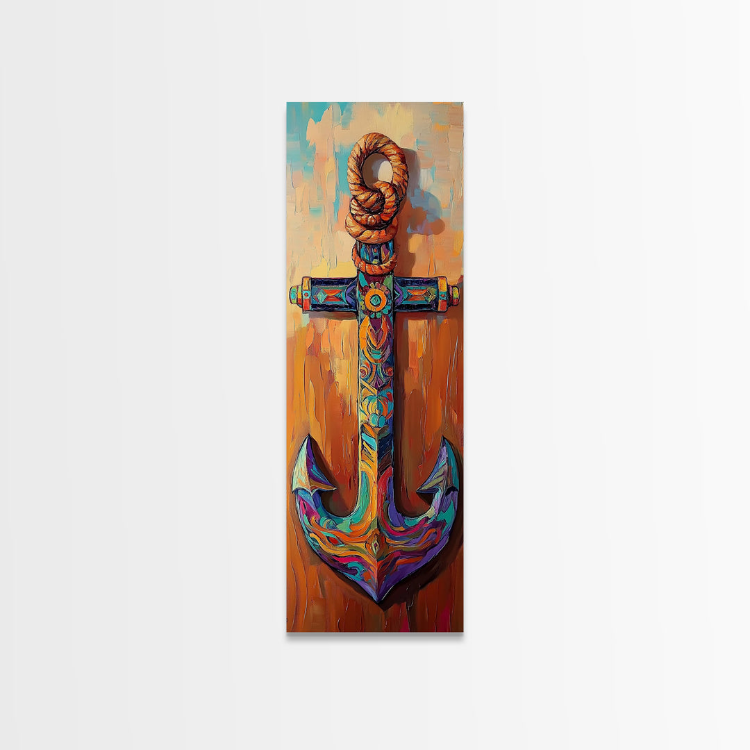 Nautical Anchor, Coastal Decor, Beach Vibes, Framed Canvas Print, colorful boho anchor art, nautical home wall art, bathroom or hallway accent