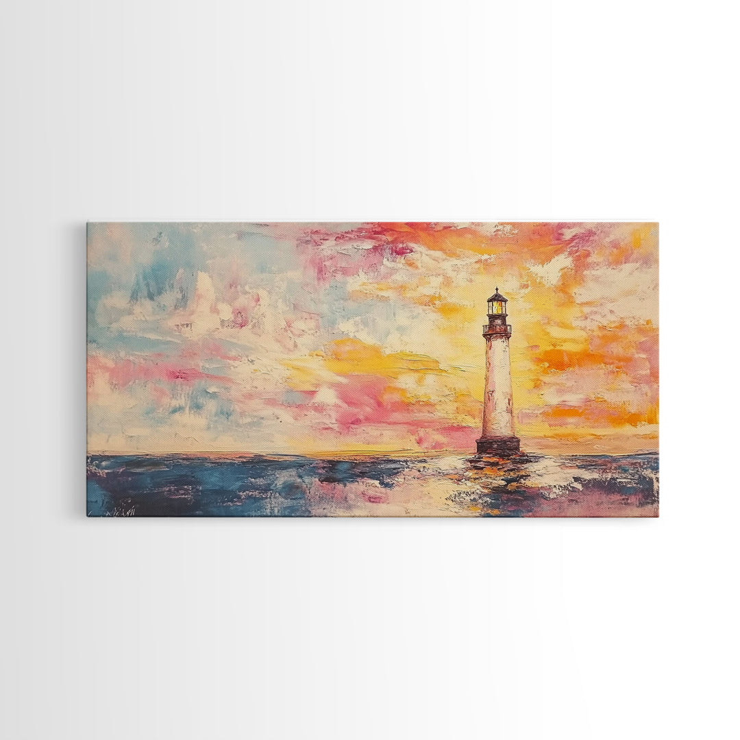 Nautical Seascapes Oil Painting Print, Nautical Landscape Painting, Beach Art, Light House Painting, Sunrise Oil Painting Print