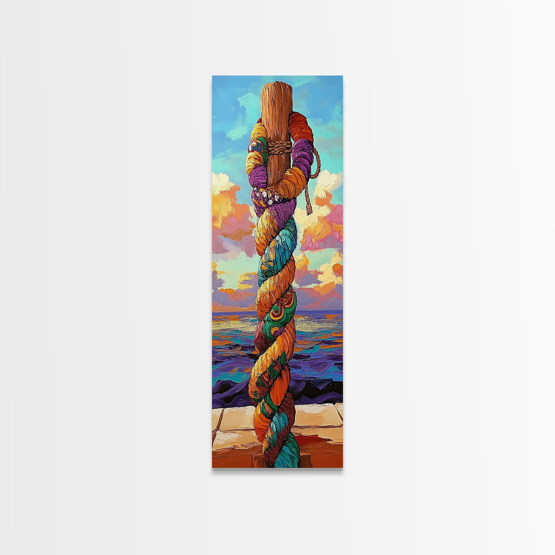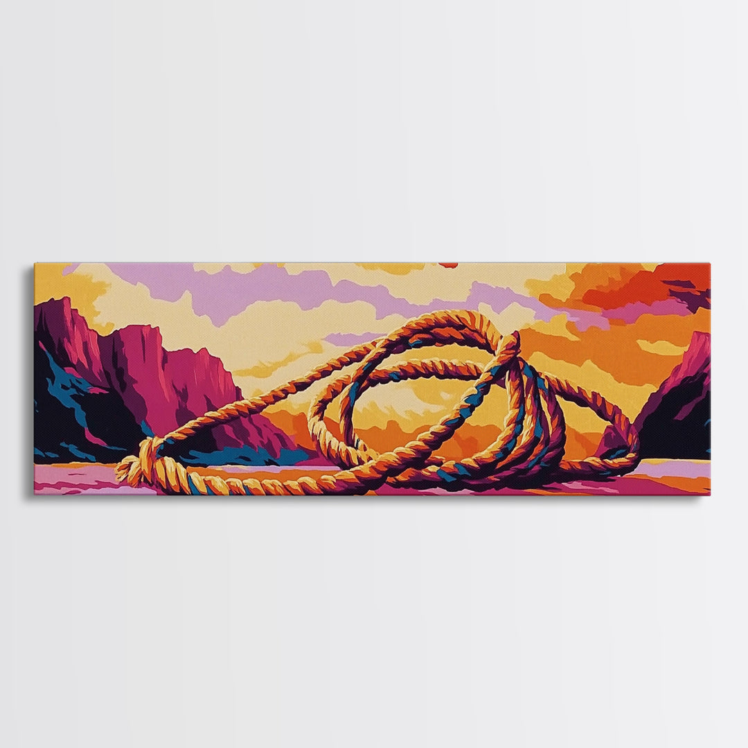 Nautical Rope, Ocean Sunset, Coastal Artwork, Canvas Print, Beach House Wall Art, Seaside Decor, Vibrant Nautical Painting, Bold Colors