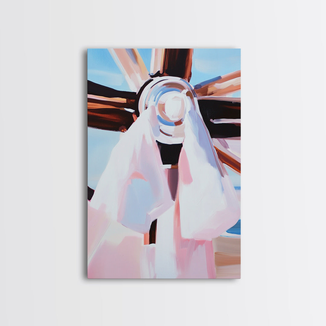 Nautical, Ship Wheel, Coastal Beach House Decor, Framed Canvas Print, Maritime Wall Art, Vintage Ocean Painting, Minimalist Nautical Art