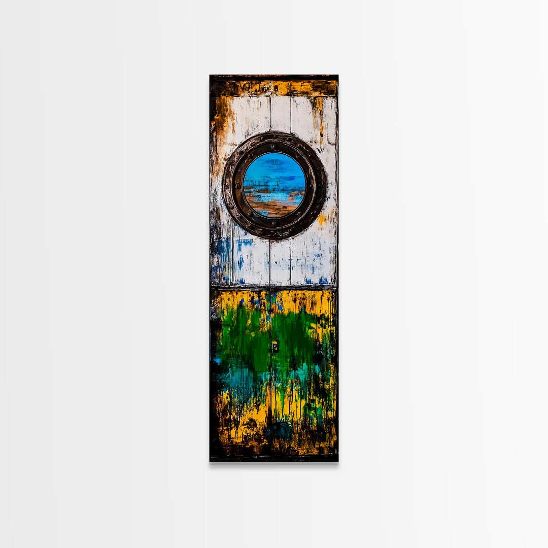Nautical Window, Rustic Wood, Coastal Home, Canvas Print, Ocean View, Maritime Wall Art, Beach House Decor, Living Room Wall Art