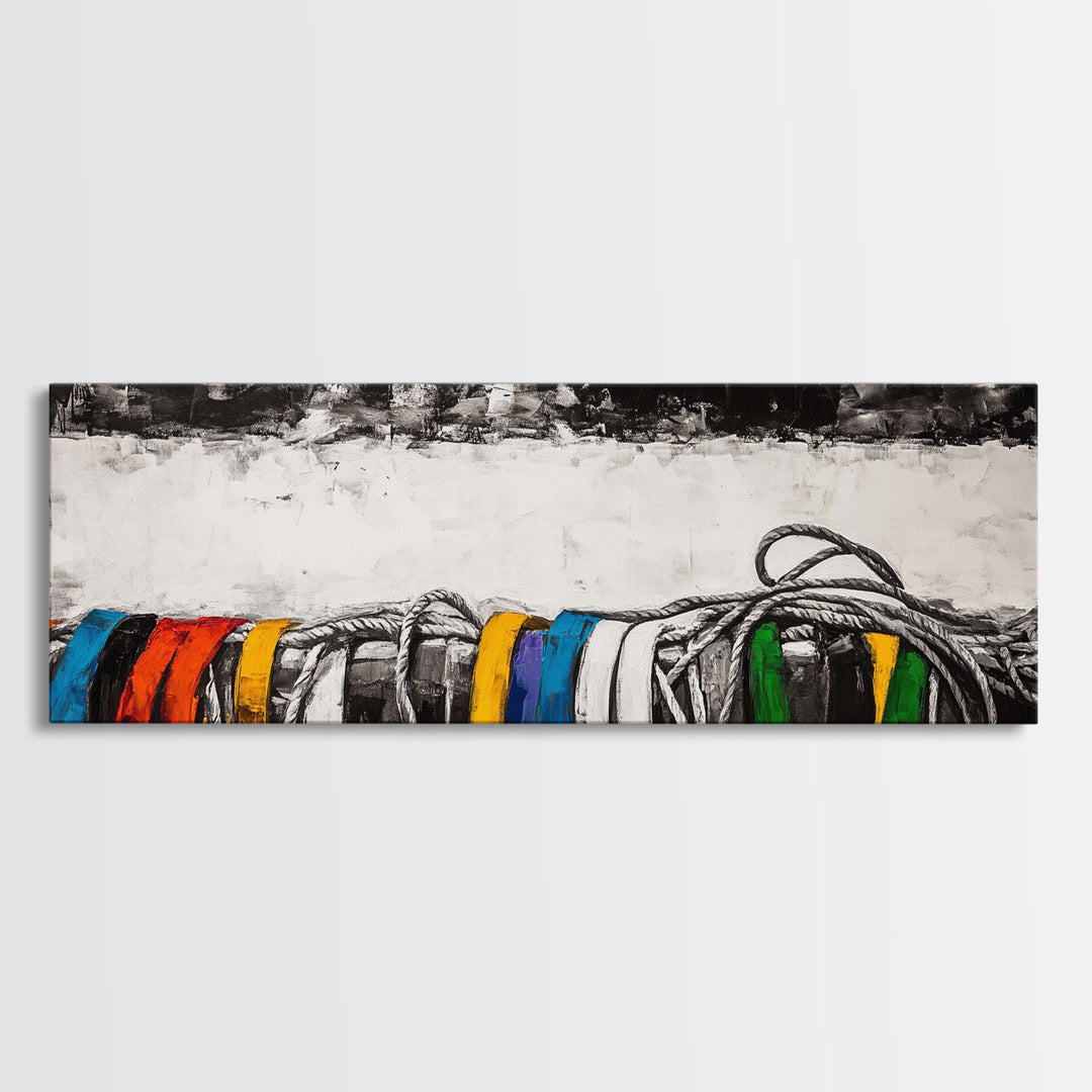 Nautical Ropes, Industrial Chic, Black White Colorful, Framed Canvas Print, Coastal Wall Art, Modern Minimalist Decor, Unique Artwork