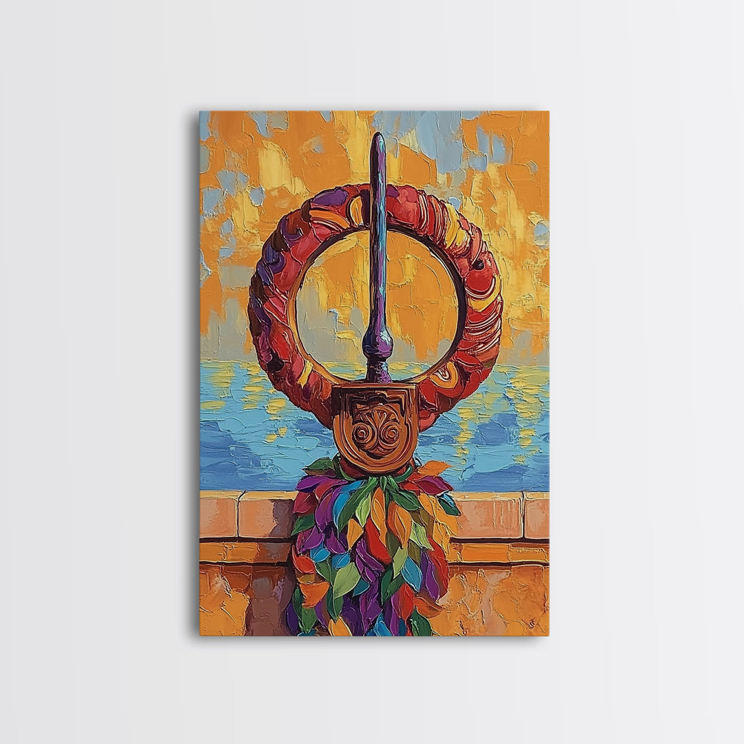 Nautical Wreath Art, Print, Framed Canvas Print, Coastal outdoor art, beach patio wall decor, bold ocean colors, summer vibes