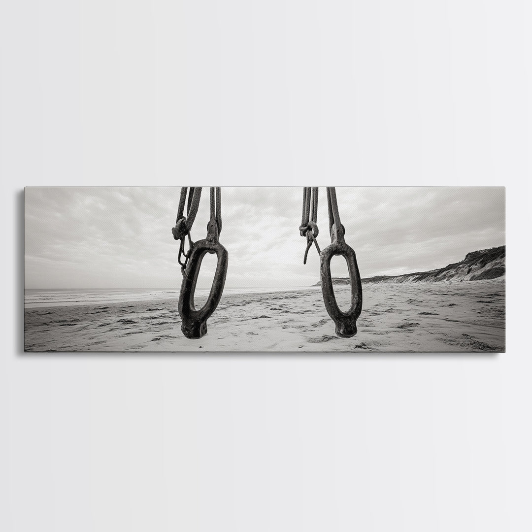 Nautical Swing, Beach Ropes, Seaside Minimalism, Canvas Print, black and white beach decor, coastal hallway wall art, maritime rustic style