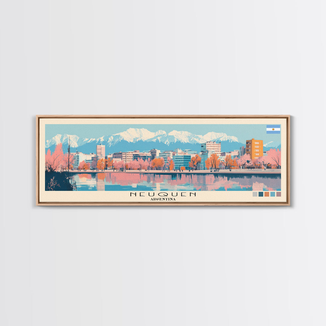 Neuquen, Argentina Panoramic Travel Poster Canvas Print, Neuquen, Argentina Painting, Argentina Art, Neuquen Travel Art, Guest Room Painting