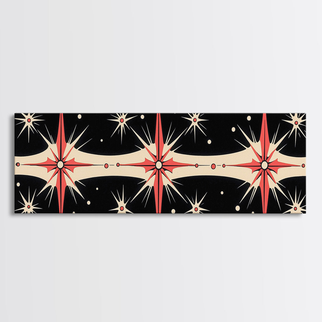 Neutral Star Burst Framed Canvas Print, Abstract Atomic Age Wall Art, Mid-Century Modern 1950s Style Home Decor, Large Scale Art