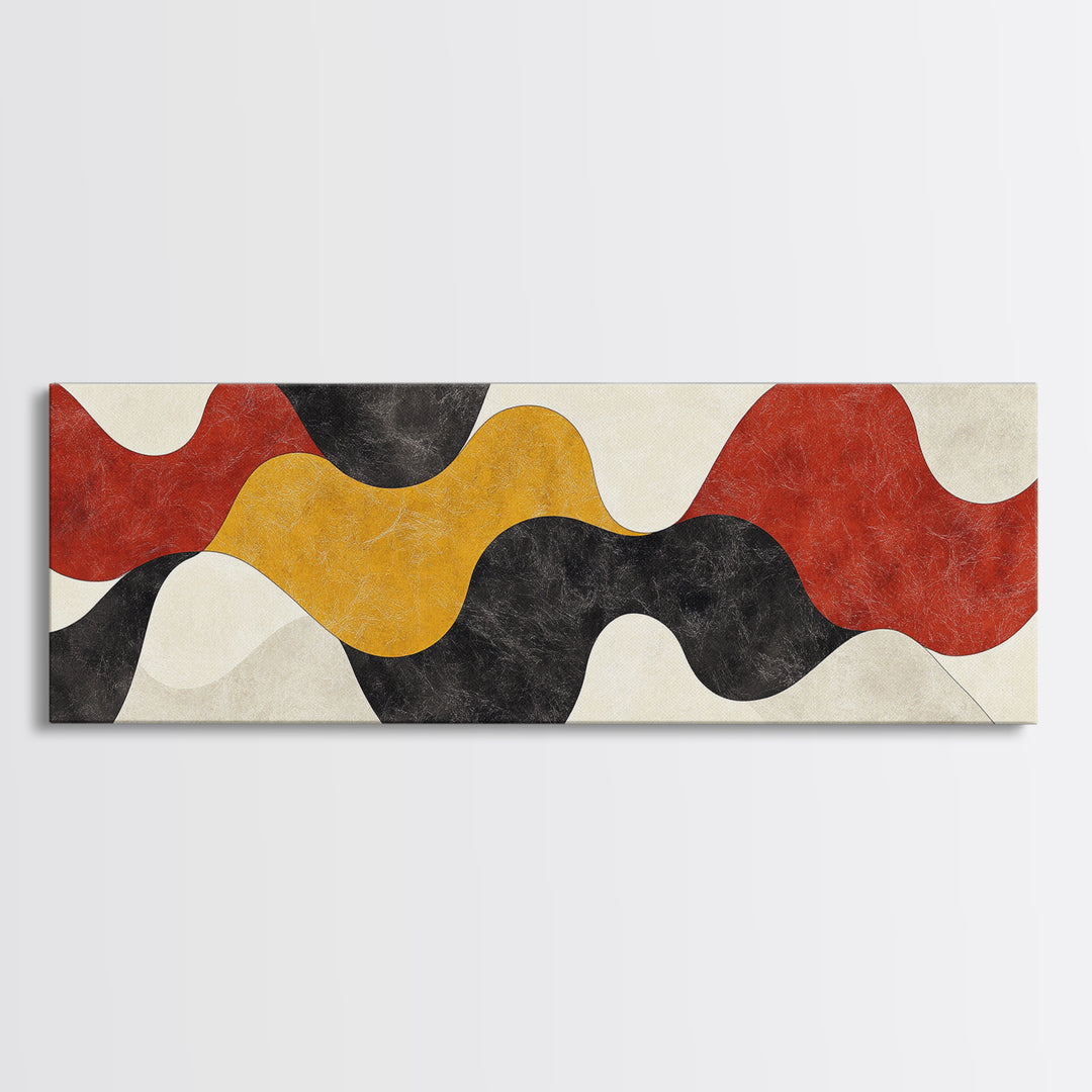 Neutral Abstract Geometric Shapes Pattern Print, Panoramic Wall Art, Extra Wide Minimalist MCM Home Decor