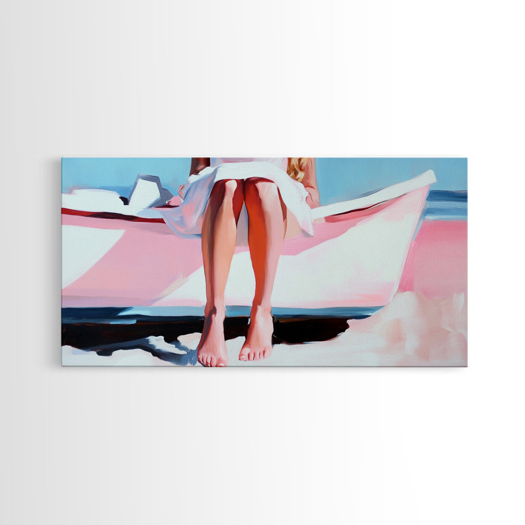 Barefoot on Boat, Coastal Lifestyle, Serene Beach Art, Nautical Aesthetic, Minimalist Wall Decor, Pastel Home Art, Canvas Print