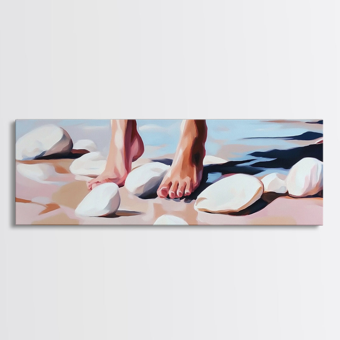 Barefoot, Water, Stones, Canvas Print, Beach Aesthetic, Coastal Artwork, Relaxing Wall Art, Minimalist Decor, Bedroom or Bathroom Art