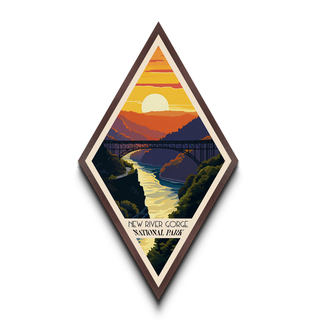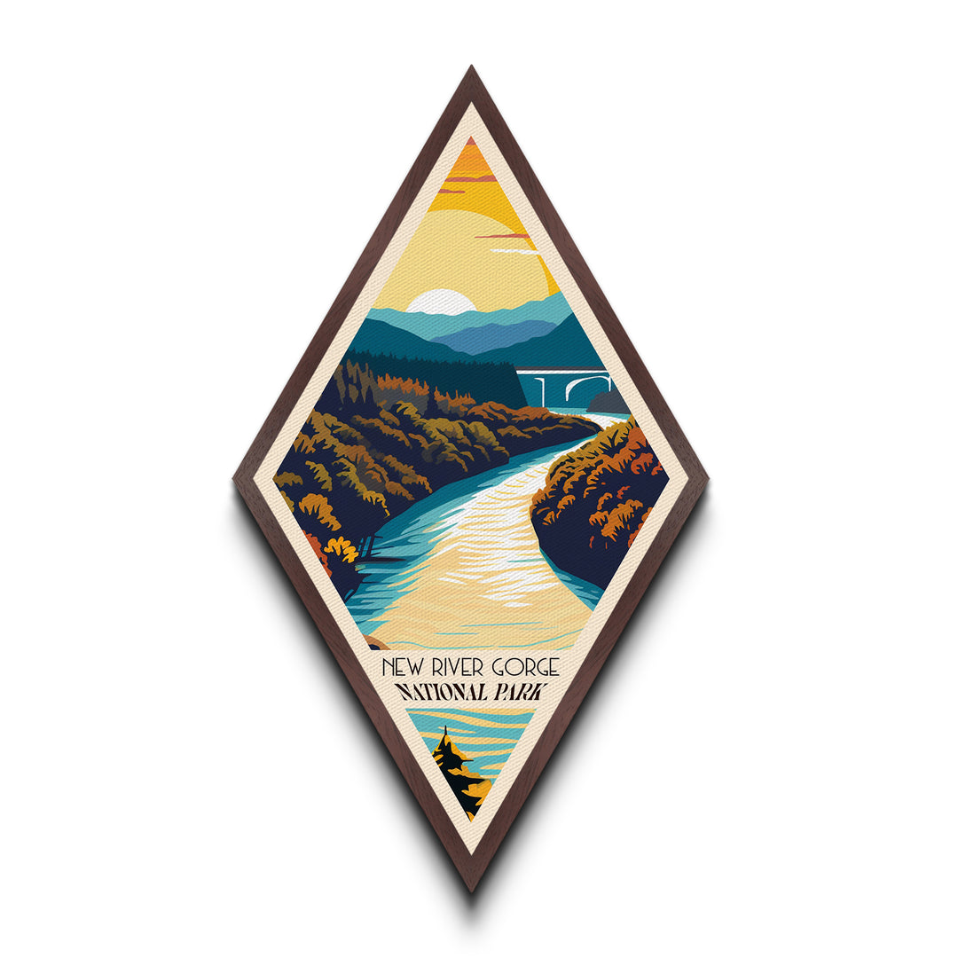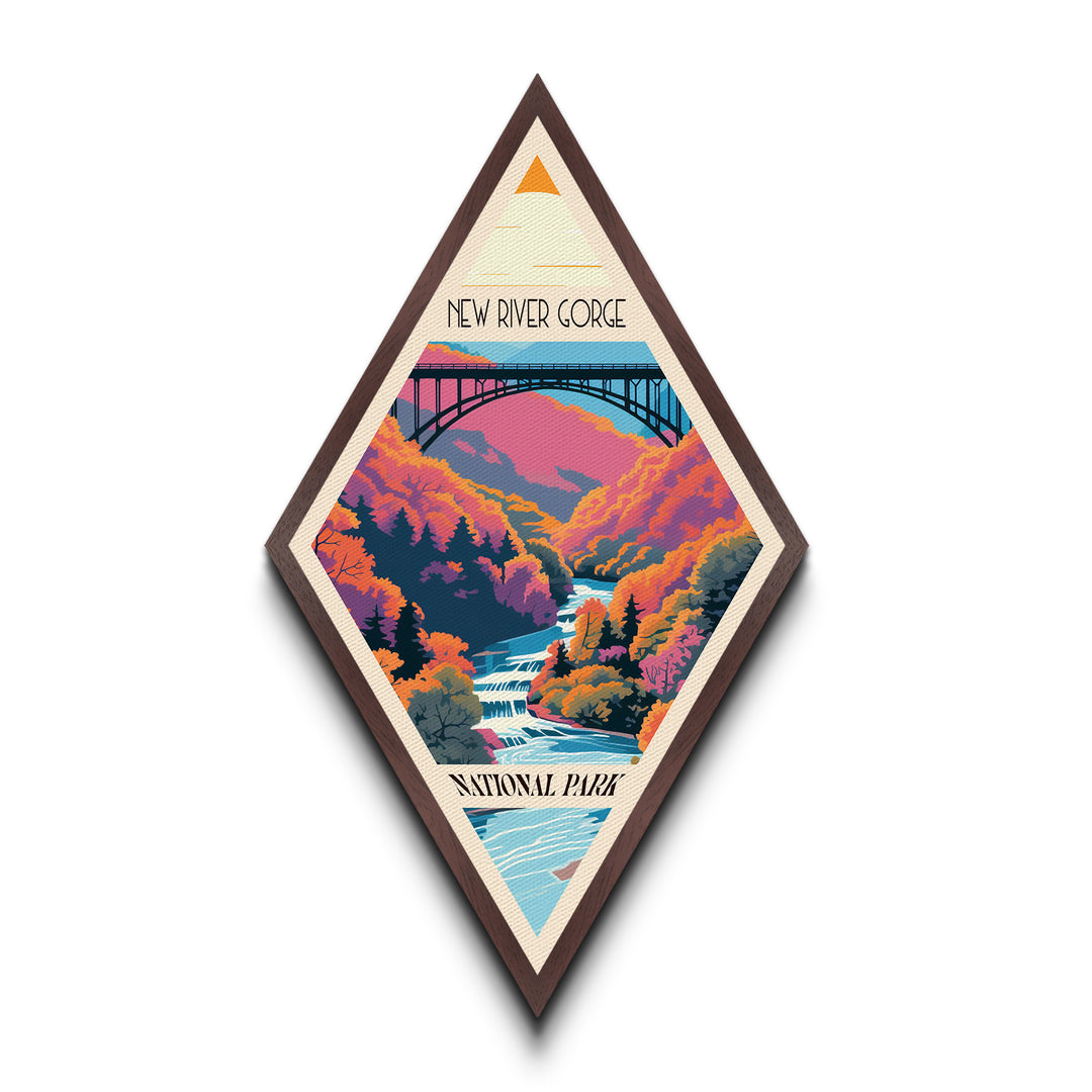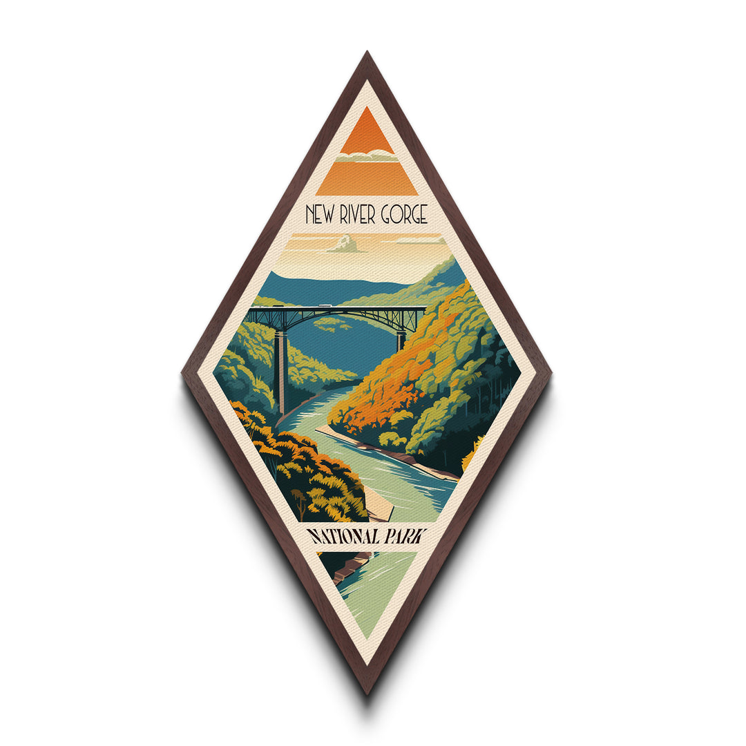 New River Gorge National Park Diamond Shaped Travel Poster Canvas Art Print, Canvas Wall Art, Travel Gift, West Virginia Travel Art