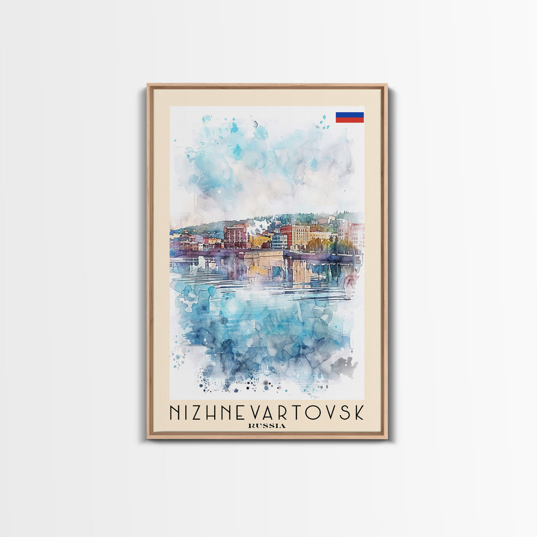 Nizhnevartovsk Russia Framed Canvas Print, Scenic Travel Poster, Watercolor Painting, Wall Art, Home Decor, Russian Landscape, Urban Style