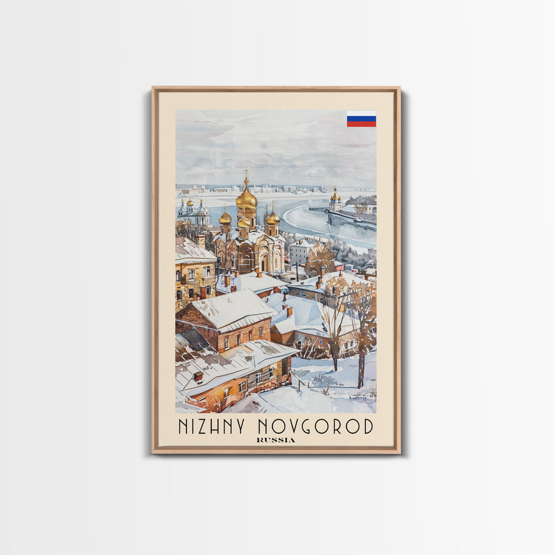 Nizhny Novgorod Russia Travel Poster Framed Canvas Print, Midcentury Modern Art, Pop Art Wall Decor, Scenic Bedroom Art, Office Decoration