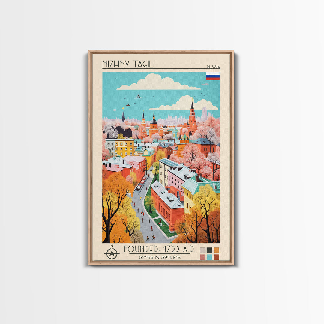 Nizhny Tagil Russia Travel Poster Framed Canvas Print, Midcentury Modern Art, Pop Art Wall Decor, Scenic Living Room Art, Bedroom Decor