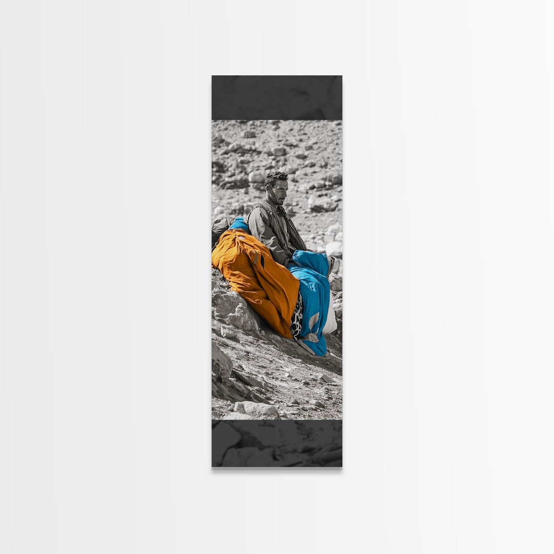 Nomadic Man, Desert Life, Color Blankets, Tribal Spirit, Framed Canvas Print, Ethnic Art, Boho Decor, Bedroom Wall Art, Cultural Piece