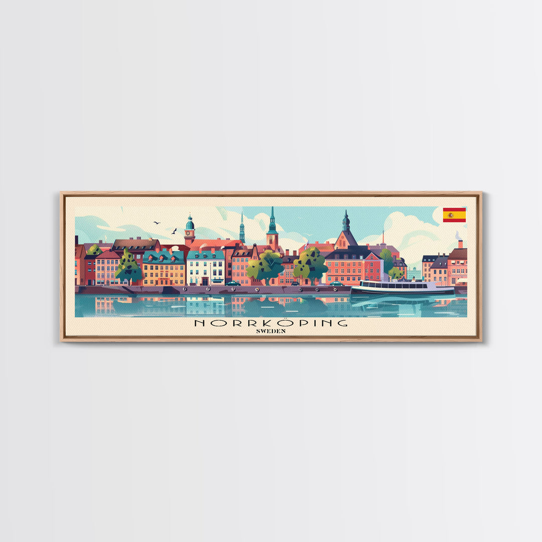 Norrköping Sweden Travel Poster Framed Canvas Print, Midcentury Modern Art, Pop Art Wall Decor, Home Decor, Vacation Gift, Office Art
