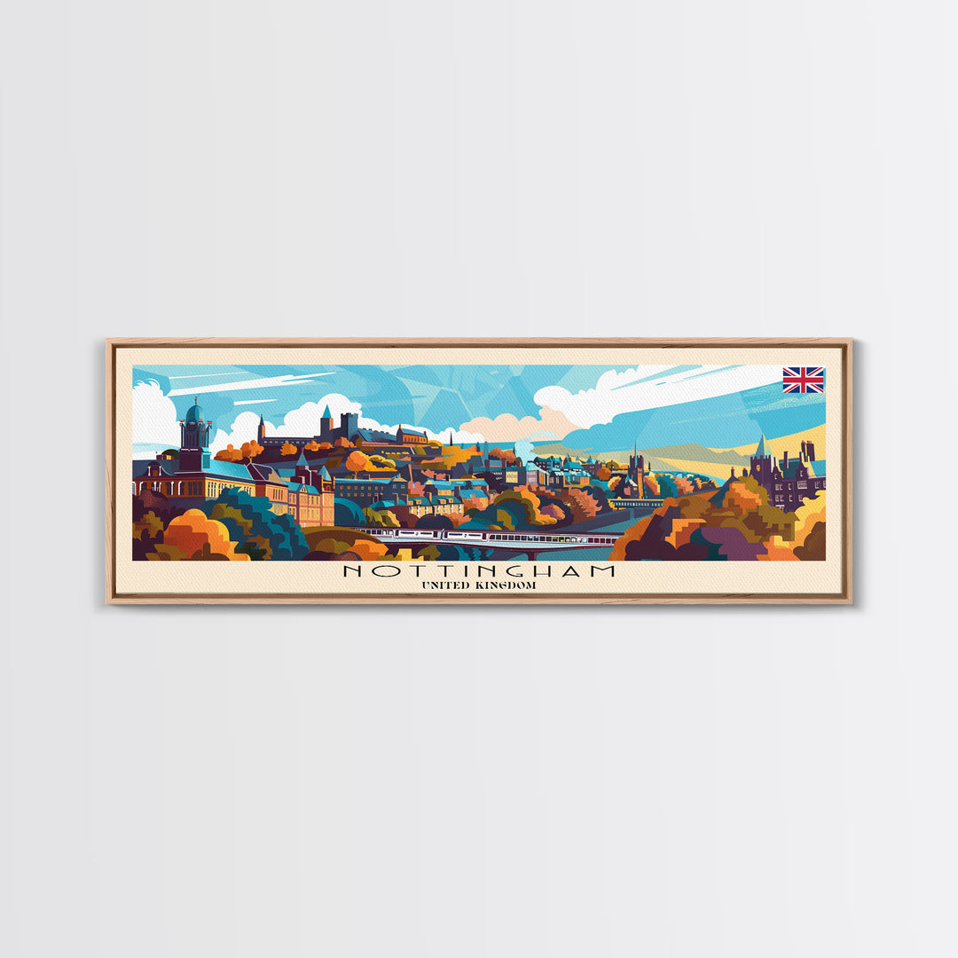 Nottingham United Kingdom Wall Art, Panoramic Travel Poster, Panoramic Framed Canvas Print, City Wall Art, Wall Hanging Home Decor, Travel Art