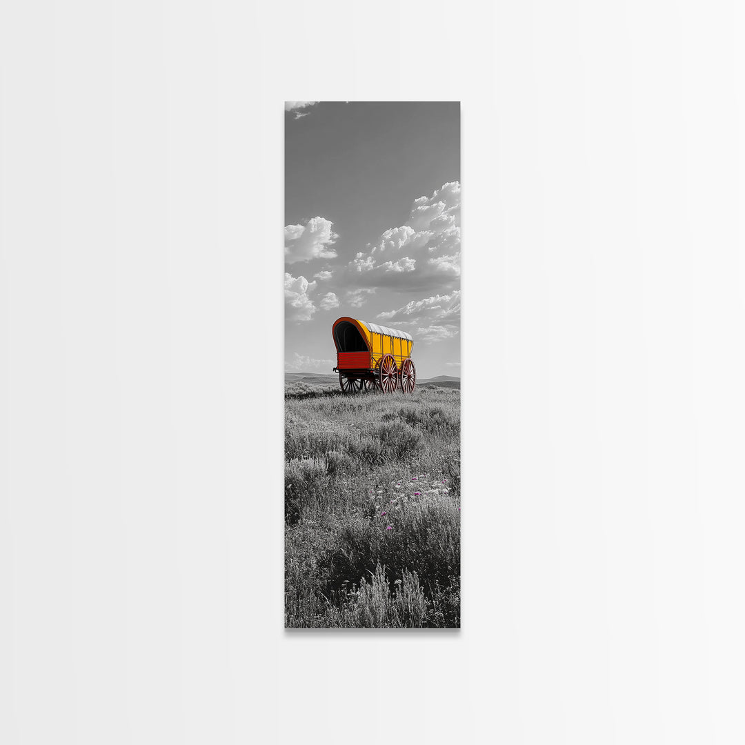 Nostalgic Wagon Trail Framed Canvas Print | Western Decor | Rustic Wall Art | Moody Landscape Art | Farmhouse Painting | Gift Idea | Panoramic Art