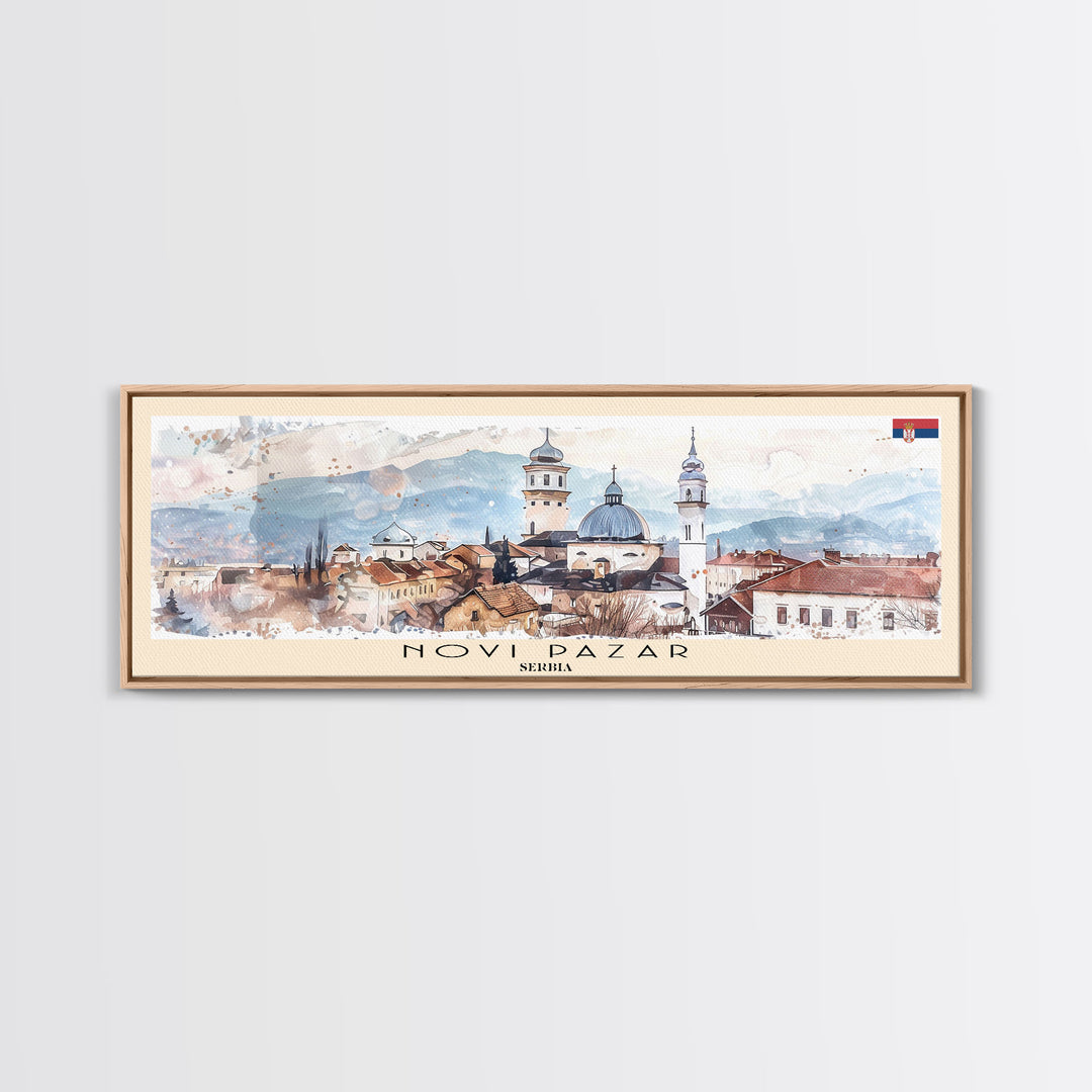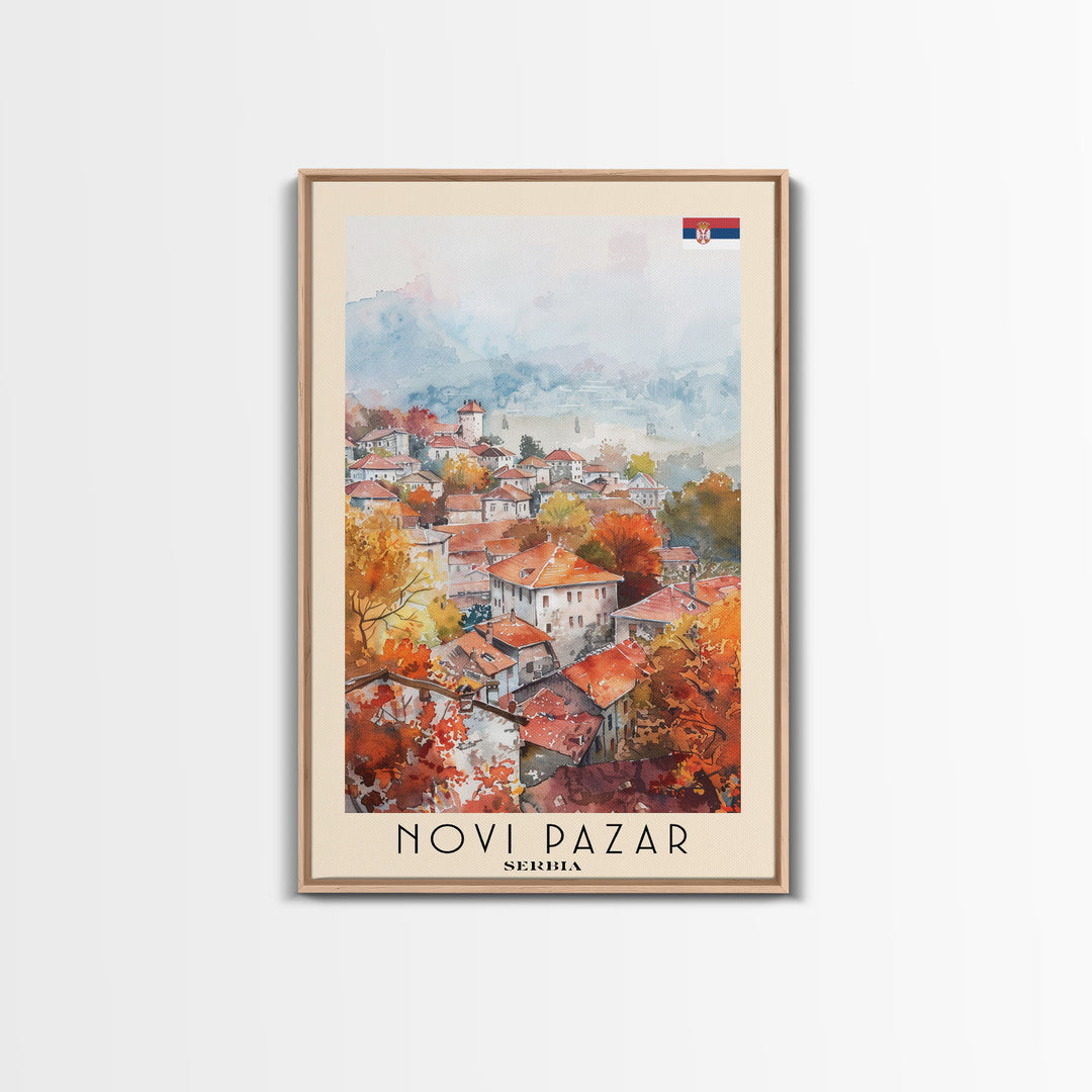 Novi Pazar Serbia Travel Poster Framed Canvas Print, Watercolor Painting, Scenic Wall Art, Home Decor, Serbian Landscape, Cultural Art