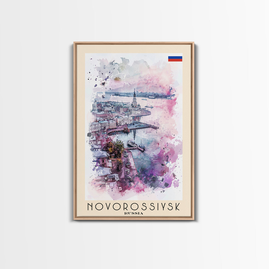 Novorossiysk Russia Travel Poster Framed Canvas Print, Watercolor Painting, Scenic Wall Art, Home Decor, Russian Coastal Scene, Classic Art