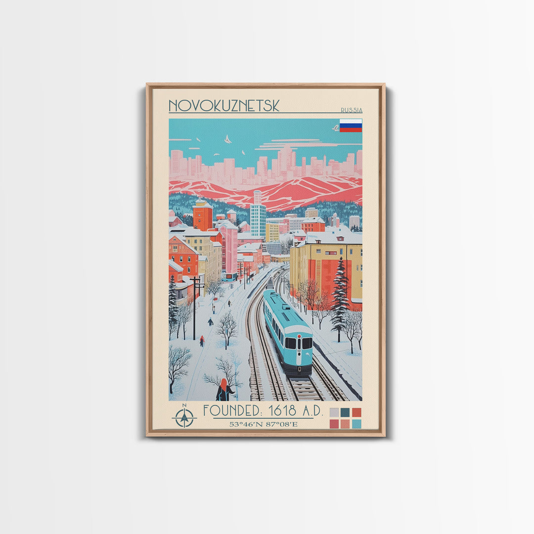 Novokuznetsk Russia Travel Poster Framed Canvas Print, Midcentury Modern Art, Pop Art Wall Decor, Scenic Wall Art, Living Room Decoration, Office Art