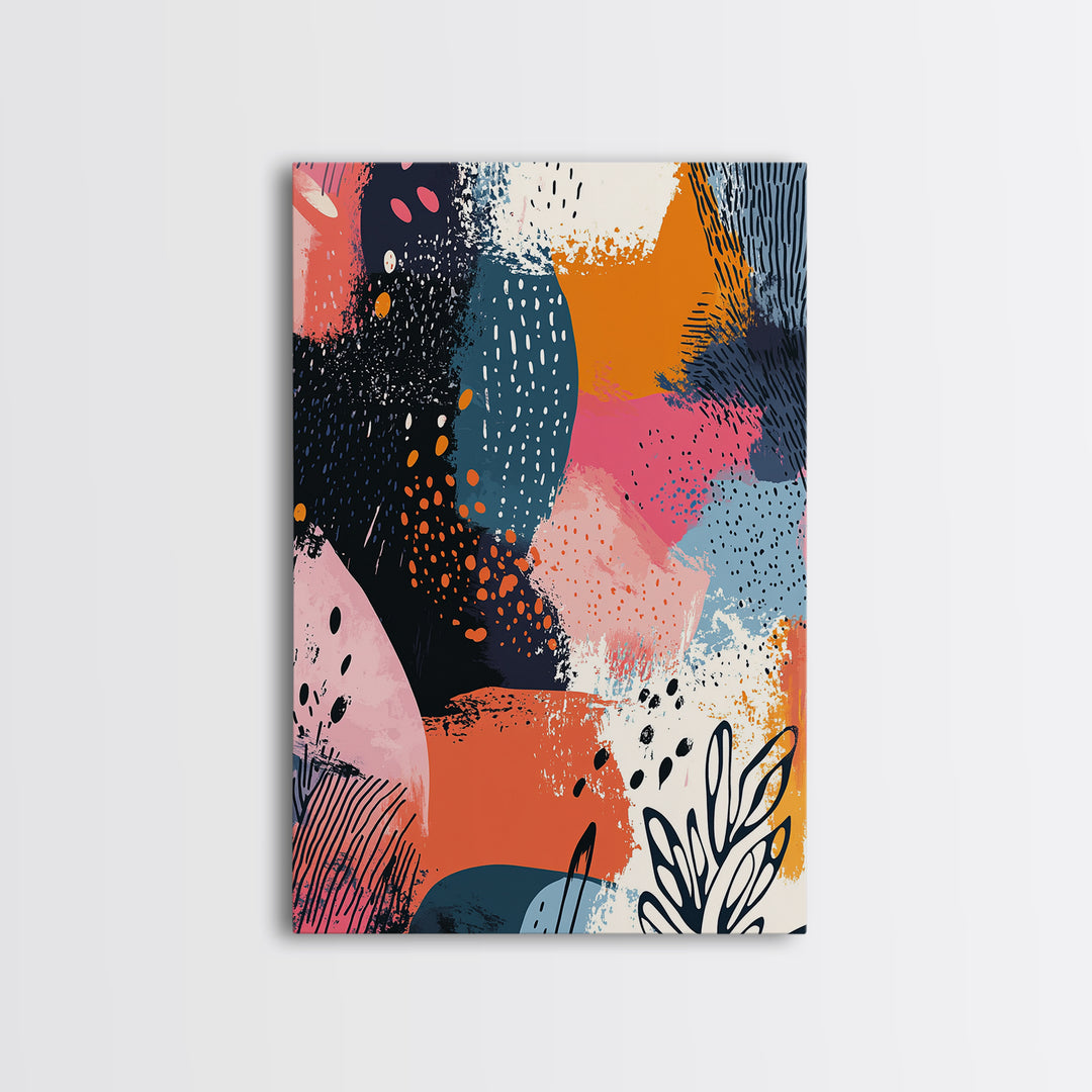 NuevArt Framed Canvas Print Wall Art MCM Mid Century Modern Canvas Print Abstract Shapes Illustration Mid Century Modern Wall Art