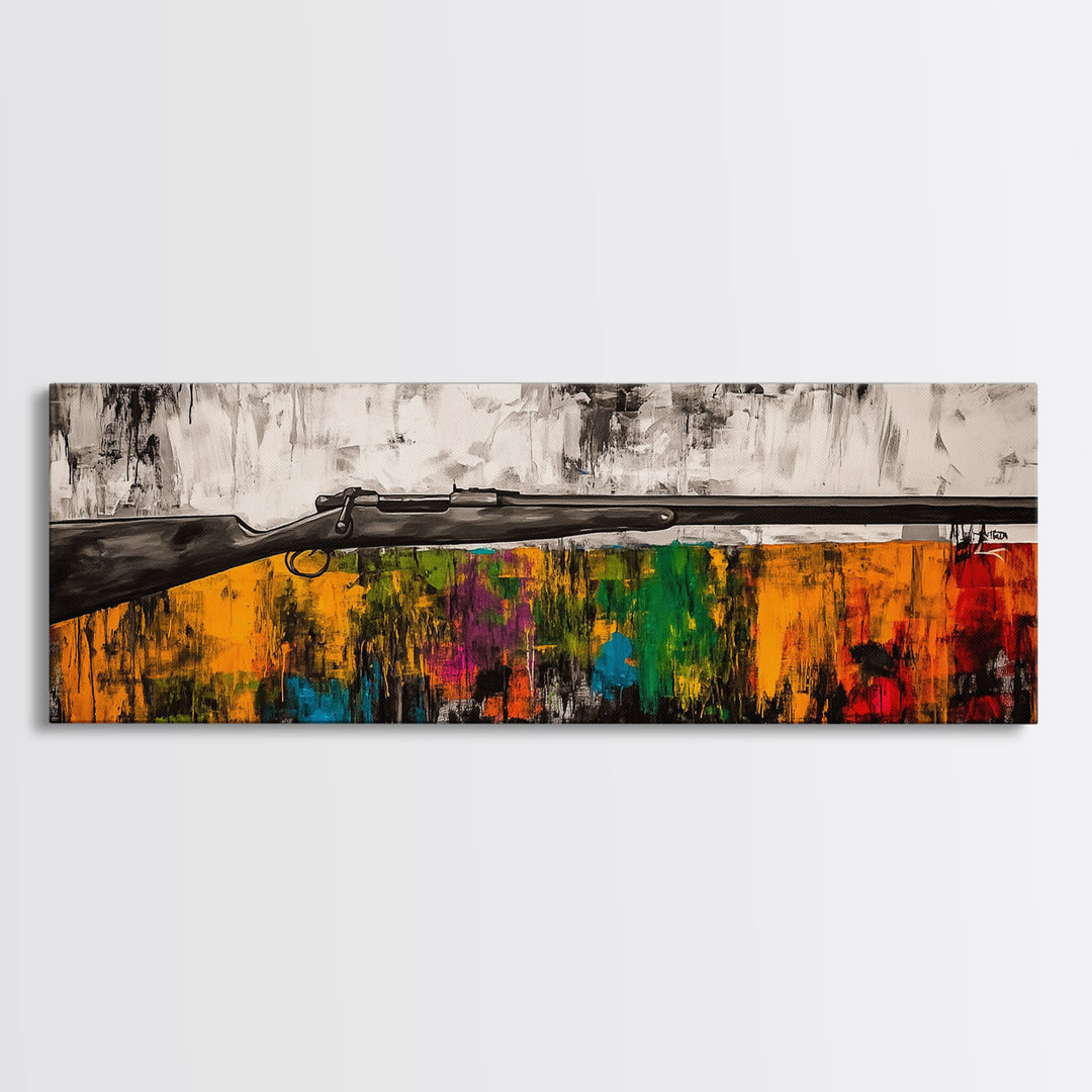 Rifle Painting, Hunting Art, Rustic Firearm Print, Vintage Weapon, Bold Abstract, Colorful Background, Man Cave Decor, Canvas Print