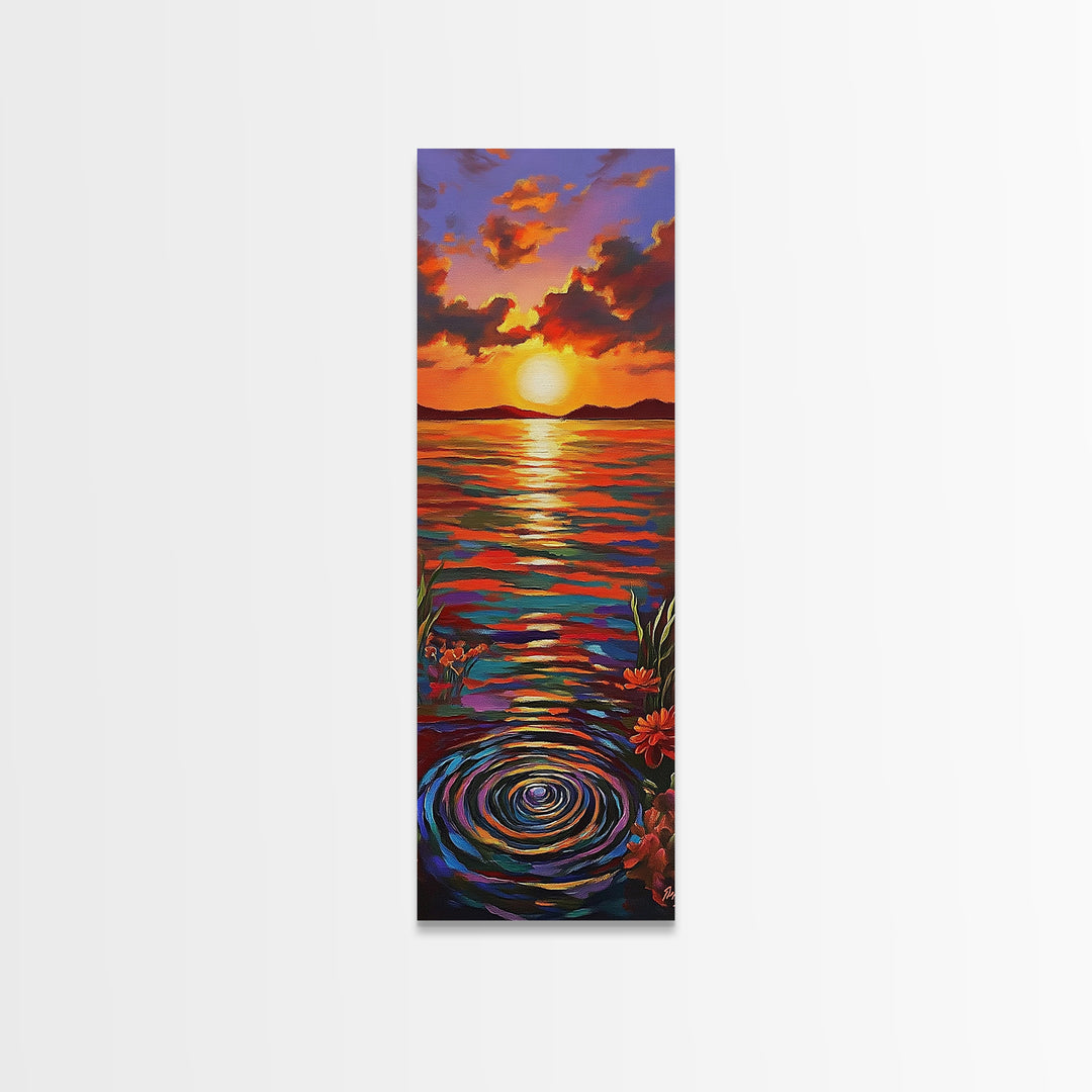 Ripple Sunset, Lake, Floral Canvas Print tranquil ripple sunset painting, colorful lake wall art, floral peaceful decor, yoga room art