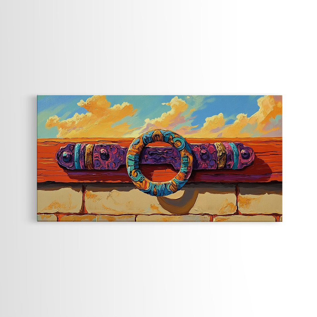 Ring Door, Rustic, Architecture, Rustic Door Ring Canvas Print, Colorful Architecture Wall Art, Entryway Decor, Living Room Style
