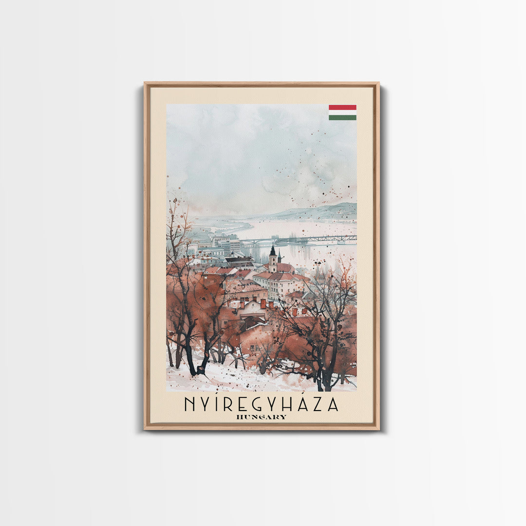 Nyiregyhaza Hungary Travel Poster Framed Canvas Print, Watercolor Painting, Scenic Wall Art, Home Decor, Hungarian Landscape, Rustic Art