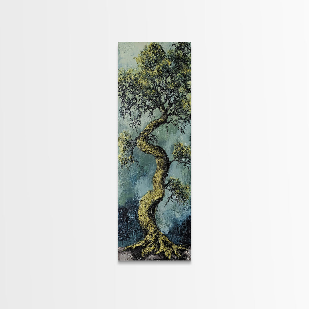 Oak tree art, mystical tree, moody art, green wall art, zen wall art, framed canvas print, nature-inspired, wabi sabi art, gift idea