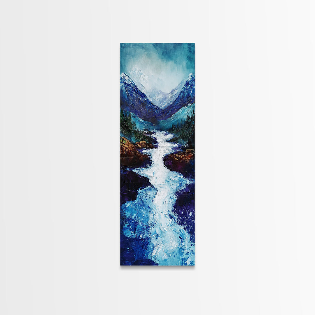 River in Mountains, moody landscape painting, smoky mountain art, rustic wall art, wabi sabi art, framed canvas print