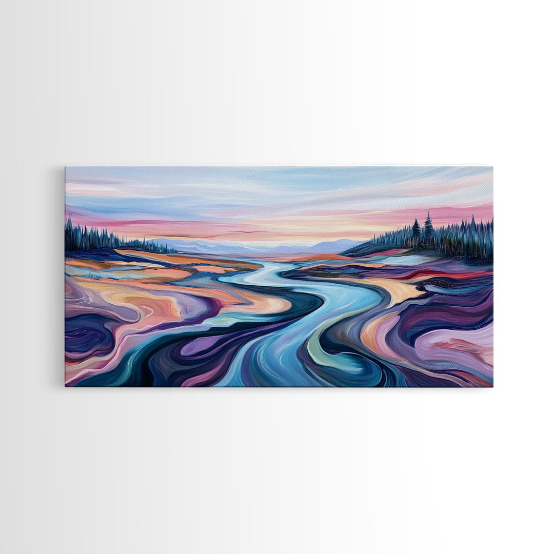 River Landscape, Abstract Art, Geometric Wall Art, Horizontal Wall Art, Extra Wide Art, Canvas Print, Living Room Art