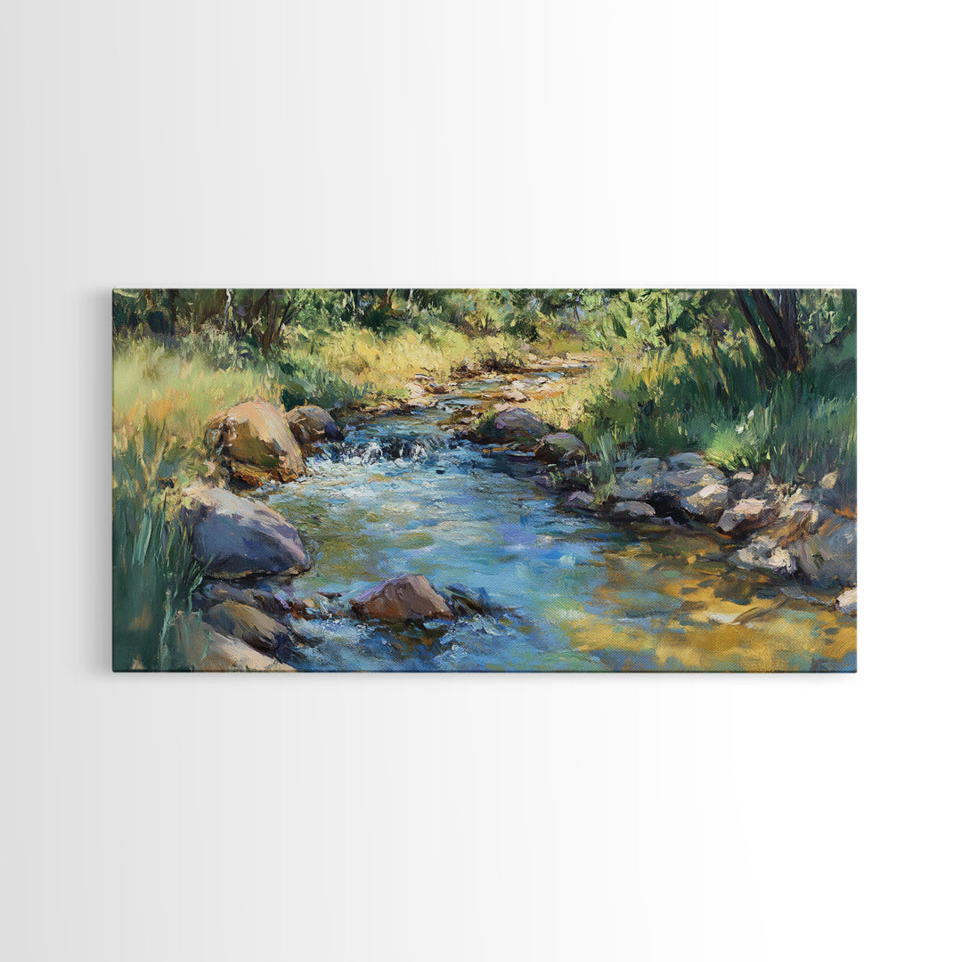 River Forest Landscape Wall Art on Canvas, Panoramic Smoky Mountains Canvas Wall Art, Framed or Unframed, Ready To Ship Horizontal Art