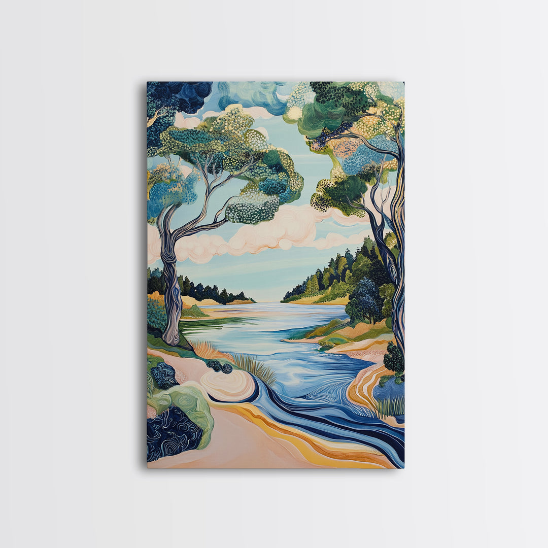 River Landscape, Nature Wall Art, Serene Water Scene, Tranquil Wilderness Painting, Country Home Decor, Scenic Canvas Print