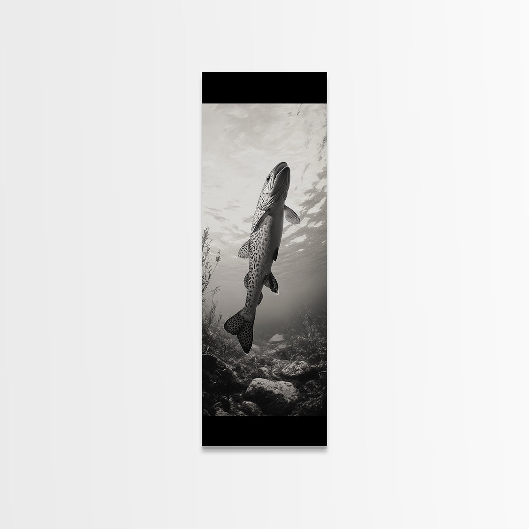 Rising Trout, Underwater Fish, Nature Close-Up, Canvas Print, Cabin Wall Art, Rustic Decor, Fishing Lover Gift, Black and White Art