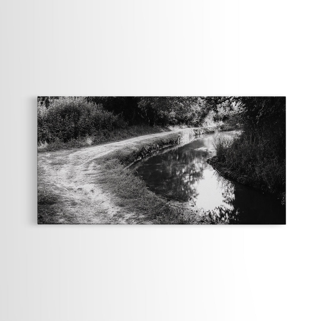 River Canyon, Dramatic Sky, Nature Pathway, Canvas Print, Adventure Wall Art, Cabin Decor, Black White Landscape Photography